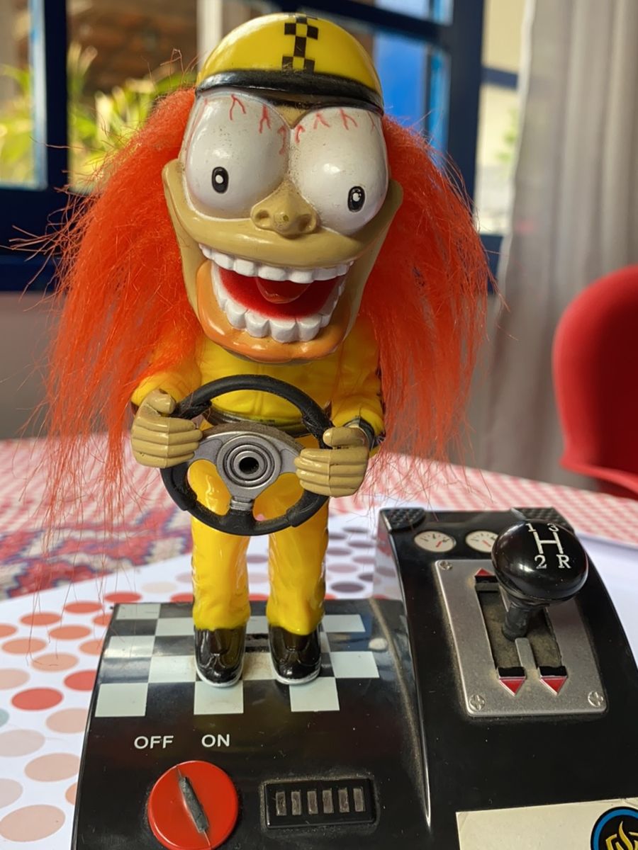 Meet your new favorite co-pilot. This vintage cartoon-style pilot figure is pure chaos in a flight cap – wild eyes, messy hair, and a fully interactive shifter. Turn the key, watch him twitch like a dragster at idle, then slam through the gears. Each shift triggers a different engine roar, and his head shakes faster with every rev. Even simulates an emergency brake screech when you’ve had enough fun. No pilot license required – just a sense of humor.