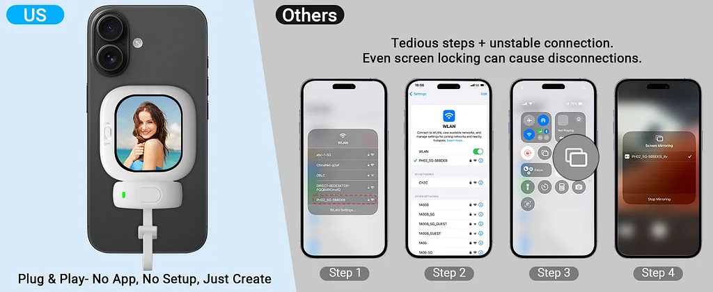 • 🔋 No Charging Needed: Powered directly by your iPhone—no built-in battery means zero charging anxiety! ⚡